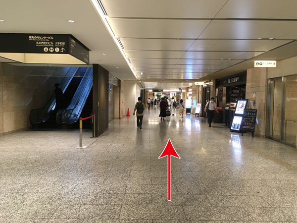 ②丸の内北口方面に続く広い通路を突き当りまで進み、左に曲がります。