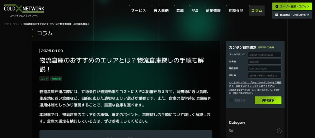 冷凍保管サービス コールドクロスネットワーク(COLD X NETWORK)の運営するコラム記事「物流倉庫のおすすめのエリアとは?物流倉庫探しの手順も解説!」に当社が掲載されました
